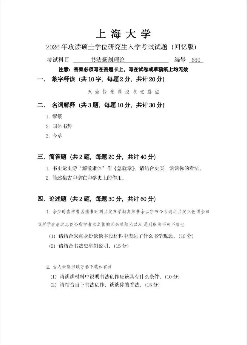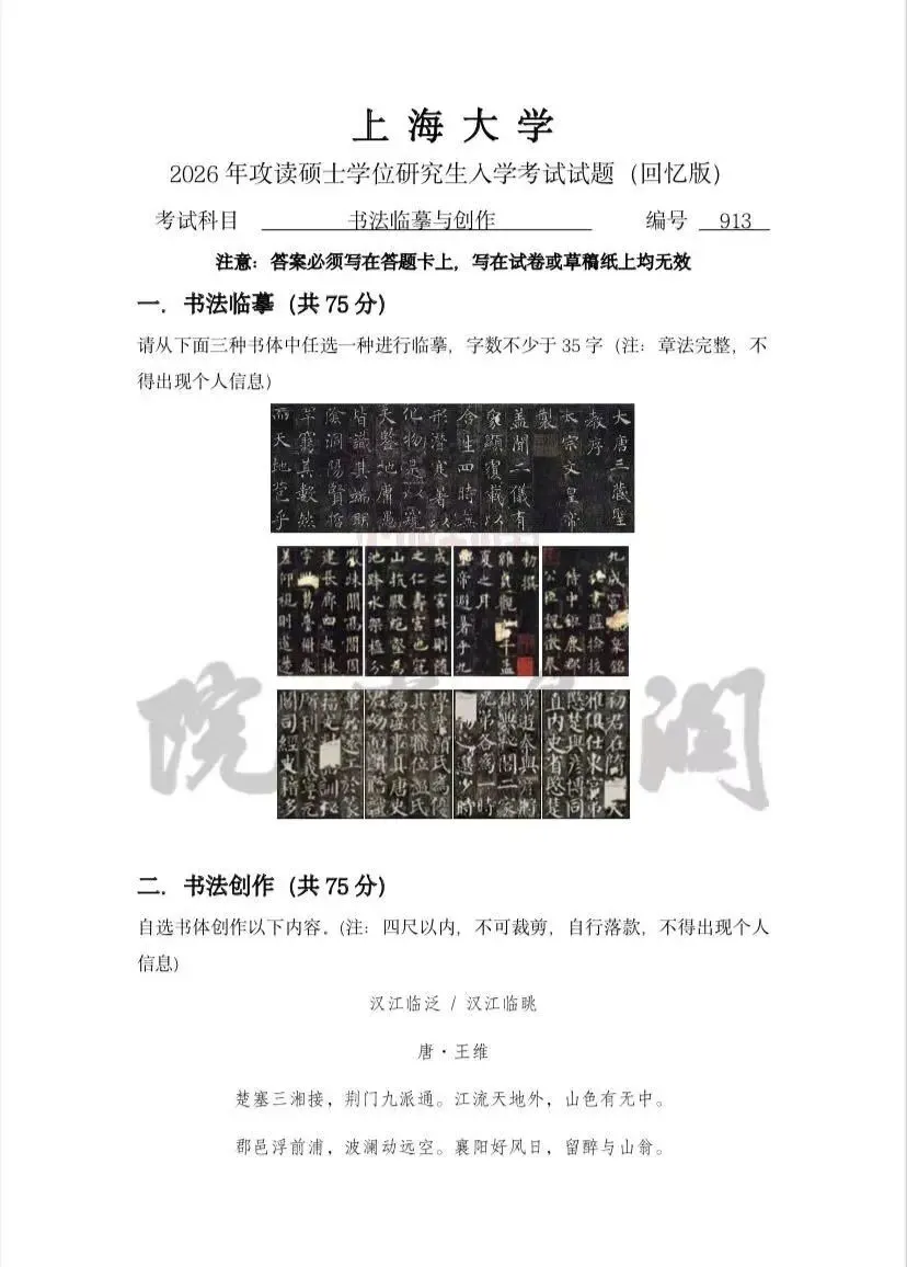 真题|江苏师范大学2026书法考研640、913真题(专硕)