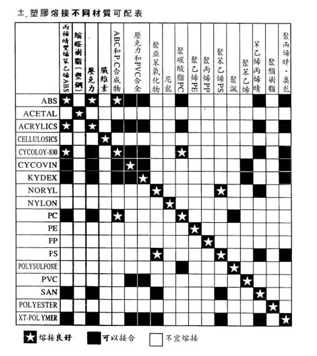 二、塑料特性焊接关系