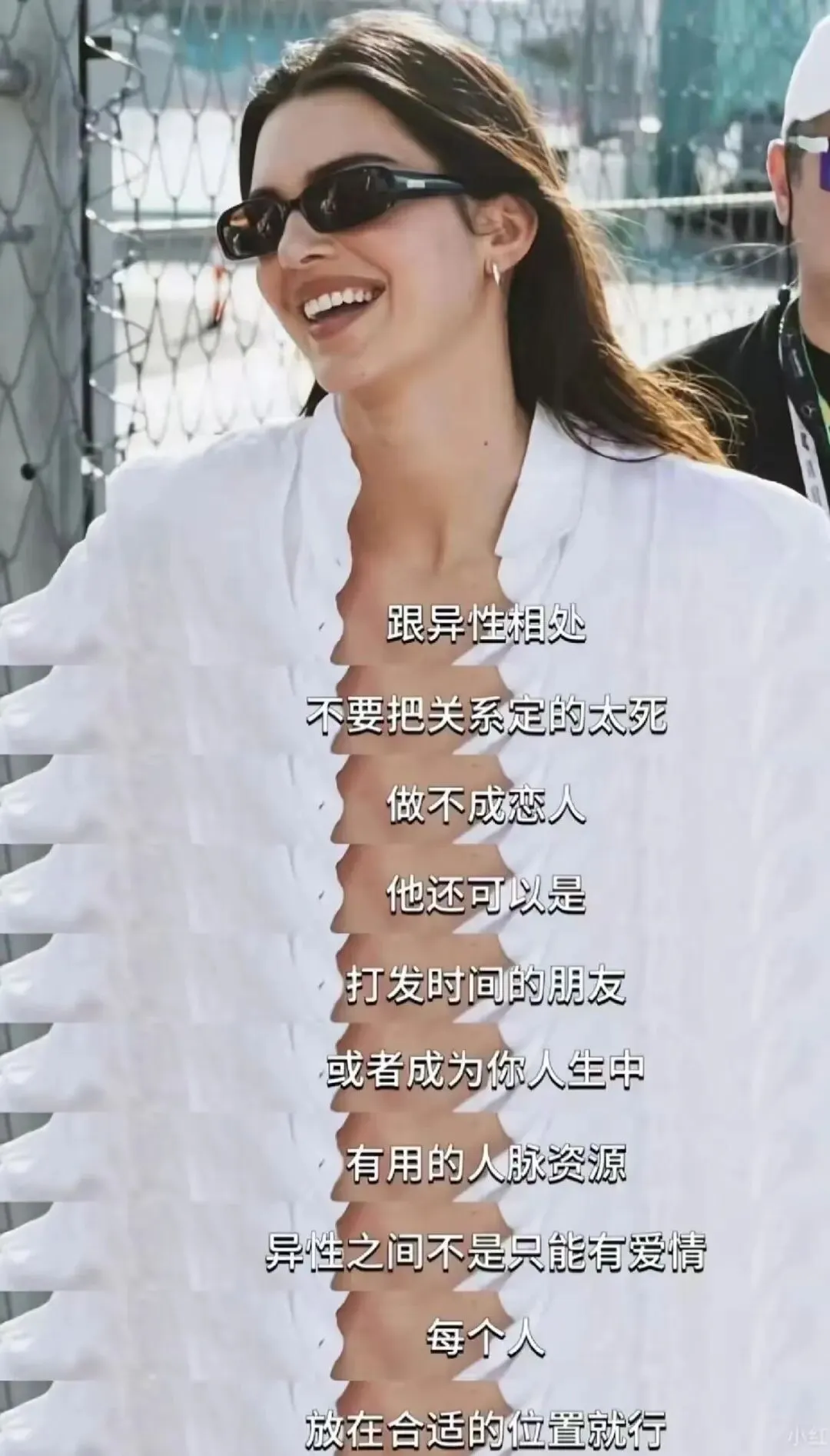 不拧巴,不纠结,喜欢就大方表达,不喜欢就坦然拒绝。不依附、不伪装,不过度牺牲,不为任何人放弃理想和内心的坚持。两个人在一起,是相互吸引而非混淆彼此。