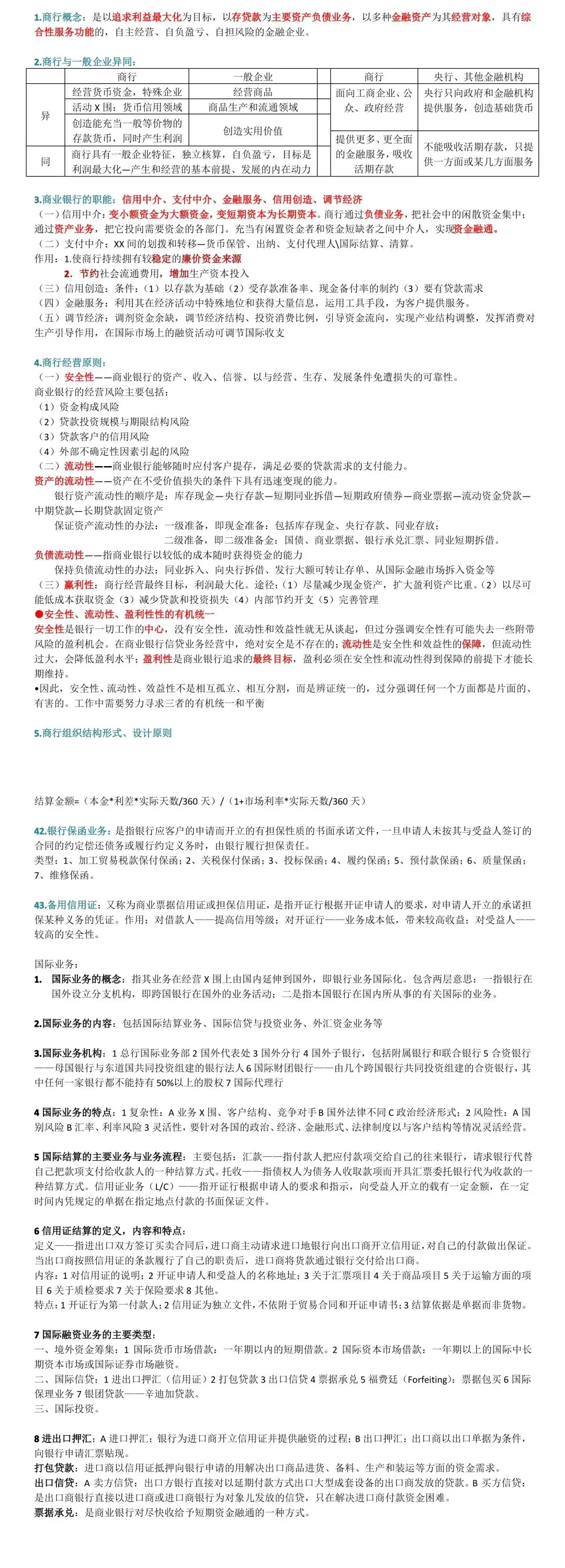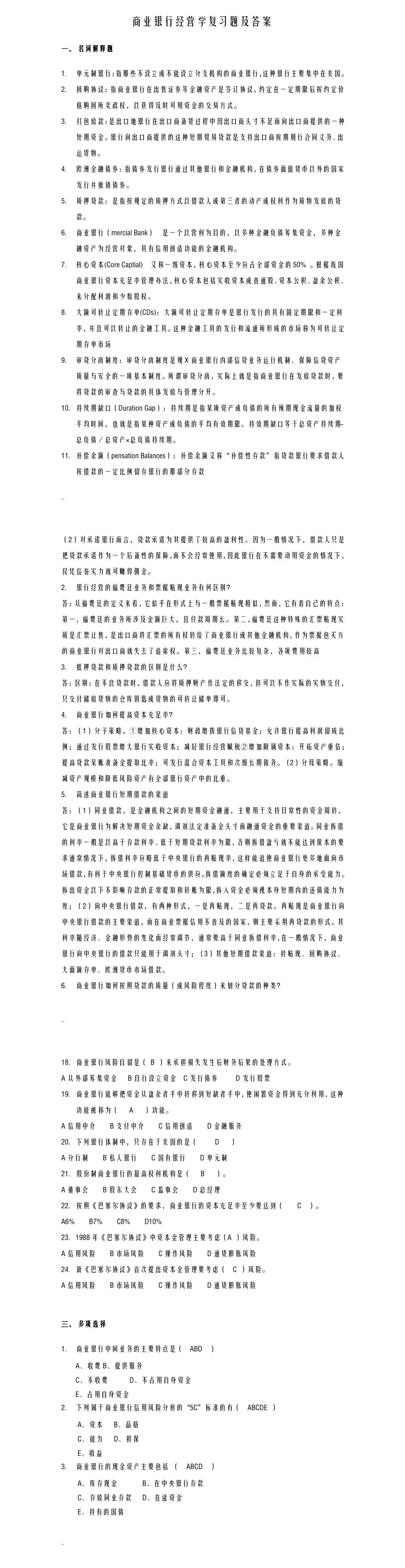 商业银行经营学复习资料目录如下: