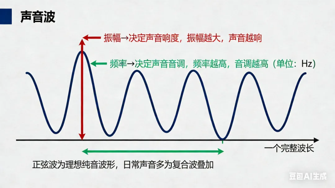 因为喜欢手碟,所以准备系统学习一下乐理知识,说不定等搞定了手碟以后,还可以再搞定其他乐器呢^_^。 之前写了两篇乐理知识自学入门笔记,又让AI给我制订了一个14天进阶学习计划,一方面可以加深对入门知识的理解,另一方面再深入拓展一下。 好多不认识的朋友给我加了关注、点了小红心,说明大家都蛮有学习热情的,那么让我们继续相互鼓励,一起见证我们的乐理知识从零到质的飞跃吧。 深入学习准备:建议家里没有钢琴的伙伴们,可以装一个完美钢琴 APP,或者其他类似的APP,可以在手机上模拟弹奏钢琴的。我的学习体会是通过钢琴琴键来理解一些乐理知识会更直观。 🎯 今日主题:音名、唱名与十二平均律(全音/半音) C - D - E - F - G - A - B - C · 关键发现 :音名字母顺序是固定的,在琴键上的位置也是固定的。EF和BC之间没有黑键! · 记忆技巧 :把钢琴键盘想象成楼梯,EF和BC是“紧挨着的台阶”。 · 固定唱名 (今日重点):无论什么调,C都唱Do。 我在基础乐理知识入门 这一篇里提到过调号这个概念,即调号是用以确定歌曲、乐曲(或调子)高度的定音记号。在简谱中,调号是确定 1(do)音的音高位置的符号,其形式为 1= ……。 例如当一首简谱歌曲为D调时,其调号就为 1= D。 综合上面的音名和唱名体系,音名CDEFGAB对应固定的钢琴键;而唱名则会根据调号而变化。当C都唱Do,就是固定的。调号不同,Do音位置也不同,这个就是首调唱名的思维模式,我们先有个概念的理解,后续再深入学习。 将一个纯八度(频率翻倍)平均分为12个等比例的半音,每个半音的频率比值相等。 关键理解 :这不是简单的“等分距离”,而是等分频率比。每个半音的频率是前一个音的约1.05946倍(2的12次方根)。 自然大调音高的关系是“全全半全全全半”,自然小调则为“全半全全半全全”。 即使调号不同,大调和小调的音高关系都如上面这种规律。 打个比方便于理解: 一个八度就像一层楼,十二平均律把这层楼修成12级完全等高的台阶(半音),你可以从任何一级开始往上走(调号不同,Do的位置不同)。 在十二平均律普及前(差不多是巴赫时代),音乐使用纯律等系统。纯律在单一调内非常和谐,但一旦转调(换到另一个调),就会产生“音不准”的可怕效果,因为不同调的音程关系不一致。 巴赫在1722年创作的《平均律钢琴曲集》(第一卷)包含24首前奏曲与赋格——每个大调和小调各一首。这实质上是为十二平均律写的“使用说明书”,向音乐界展示:“看,用这个新系统可以在所有调上自由创作!” 说明:白键C和D之间的黑键,既是#C(升C)也是bD(降D),其他黑键依次类推。 一个八度:C — #C — D — #D — E — F — #F — G — #G — A — #A — B — C 对应的音高:半 半 半 半 半 半 半 半 半 半 半 半 2. 和弦自由进行:允许复杂的和弦进行和远关系转调。 3. 现代和声学基础:爵士乐中的高叠和弦、调式互换都依赖于此。 4. 固定音高观念:A4=440Hz成为国际标准音高。 十二平均律不是绝对的“真理”,而是精巧的妥协——它牺牲了每个音程的绝对纯正,换来了音乐创作的最大自由。 现代音乐丰富多彩的可能性,都建立在这个“等分”的基础之上。 这不只是12个键,而是人类用数学为音乐找到的民主的方案——每个音、每个调,都拥有了平等的机会。 C → (黑键#C/bD → D → (黑键#D/bE) → E → F → (黑键#F/bG) → G → (黑键#G/bA) → A → (黑键#A/bB) → B → C · 关键观察 :总共经过了12个键(7白+5黑),这就是“十二平均律”的直观体现。 · 数一数 :从C到下一个C,有__个全音,__个半音?(答案:5个全音,2个半音) · 验证 :在键盘上反复弹奏这两组,再弹奏C-D(全音),感受距离差异。 · 误区1 :“D和E之间有一个黑键,所以D到E是跳了两个半音?” → 纠正 :D到E是全音,一个全音本来就等于两个半音,黑键正是那个“中间的半音”。 → 纠正 :黑键与相邻的键(白或黑)也是半音关系。如#C到D是半音。 十二平均律的概念里面提到了频率,所以想从物理学角度再拓展一下关于声音的知识。 纯属理科生刨根问底的思维习惯,不感兴趣的可以略过。不影响对乐理知识的理解。 上图的波形是简化了的声波形状,实际要复杂得多。有兴趣的可以通过声音编辑软件查看。