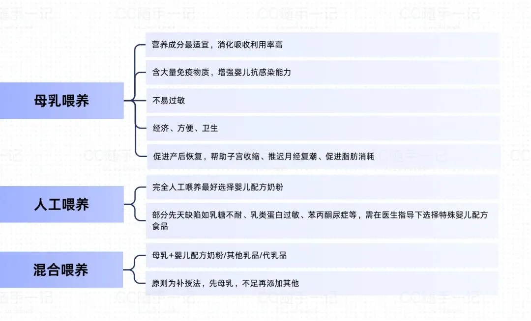 根据前篇内容,婴儿喂养方式一般分为三种,如下一
