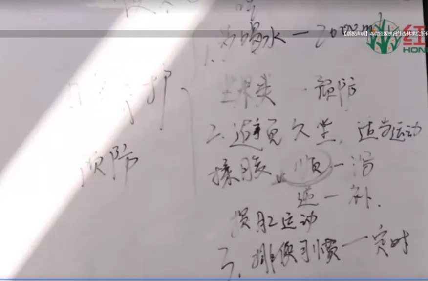 多喝水,一日约2000ml;吃些坚果类食物预防;避免久坐、适当运动。