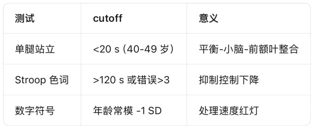 4. 2 分钟微测评(Stroop 色词+单腿站立)能可靠判断何时该就医。