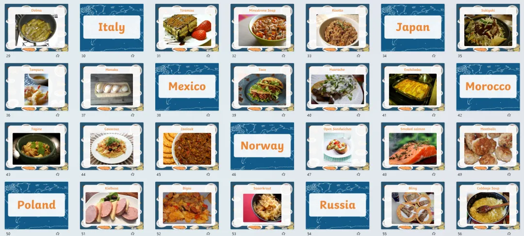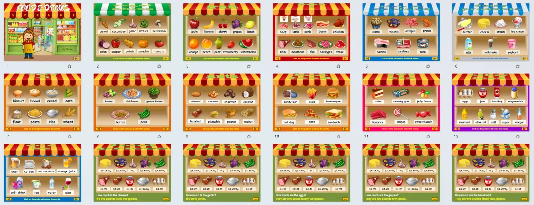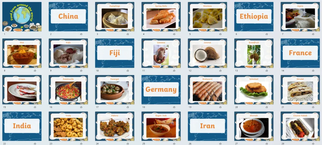 今天分享的是食物主题英语学习素材,包含6套精美PPT、3套教具、4套练习和6首歌曲!