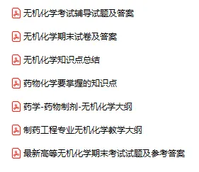 今天分享的资料是「0557-医药无机化学」电子版+学习笔记+知识点总结+期末考试重点+复习资料+习题集及答案+名词解释+历年真题试卷及答案+题库及答案+复习重点+思考题及参考答案+公式总结+考试重点基础题+知识总结+高清PDF可打印+免费分享!