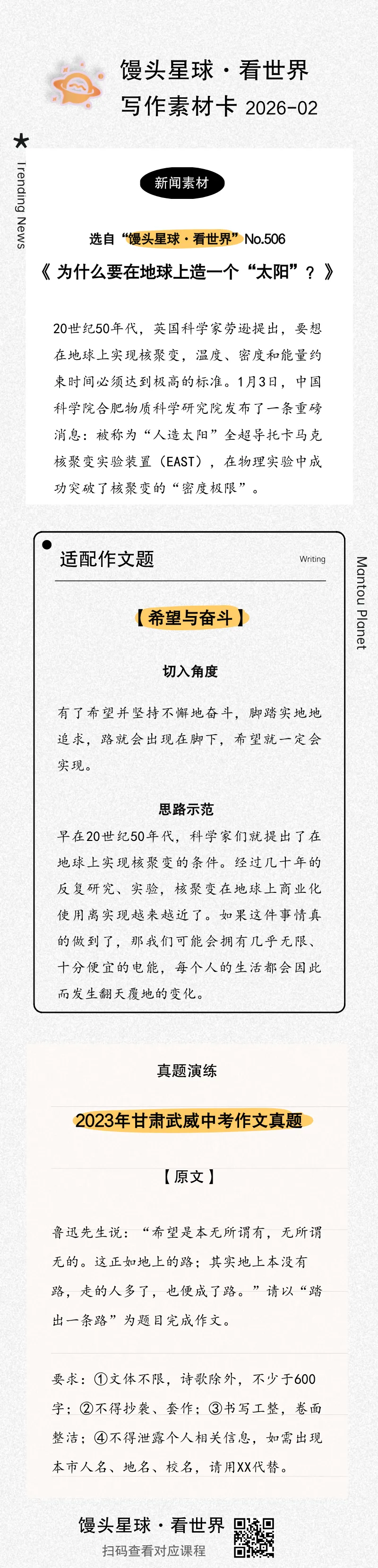 该如何把这条实时的新闻材料,用到中考作文写作当中。