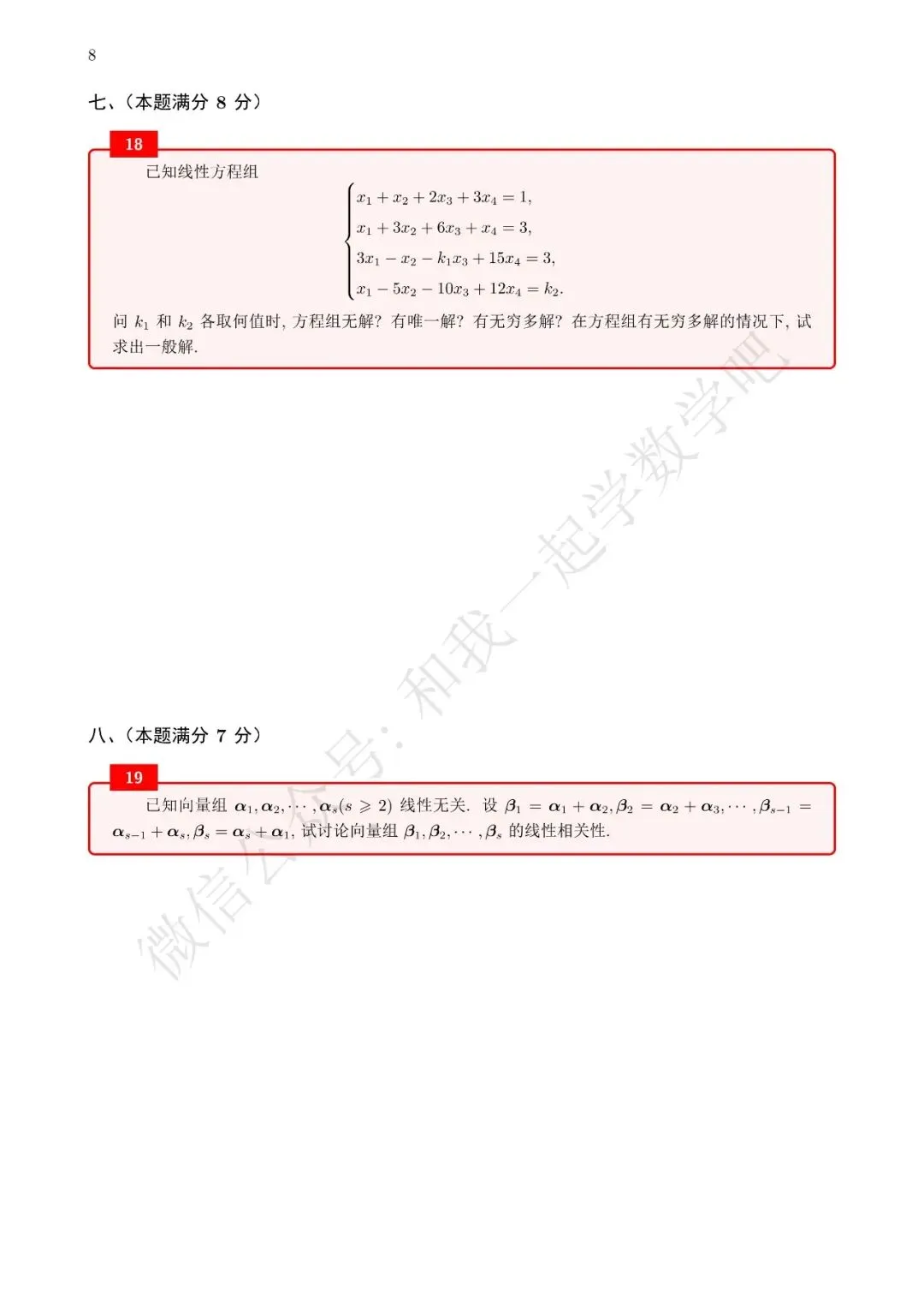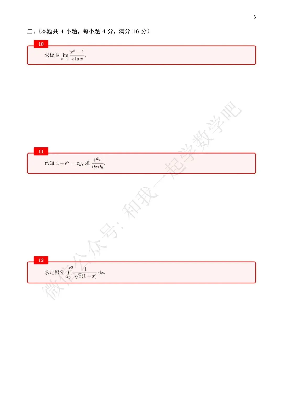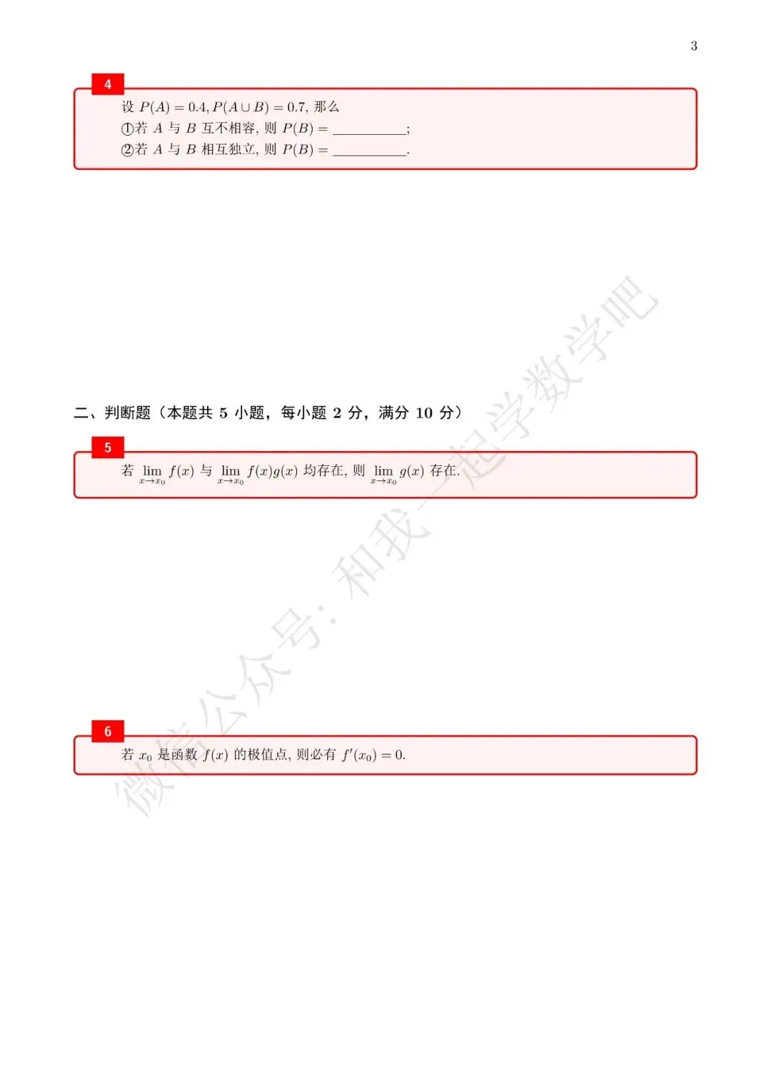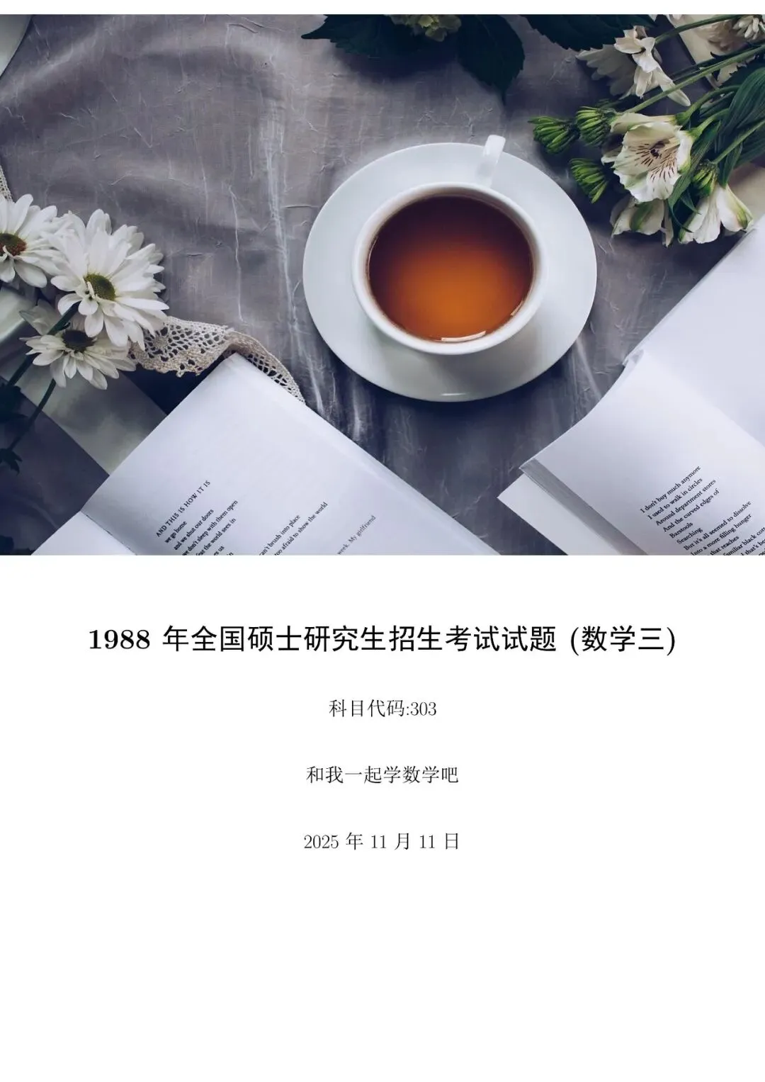 为了方便各位小伙伴们刷题,我重新排版了88年数三的真题,在每道题下面都增加了空白,方便大家写答案,记录相关知识点。以下是图片,需要原版pdf文件的同学可以后台回复"88考研数三"免费领取。