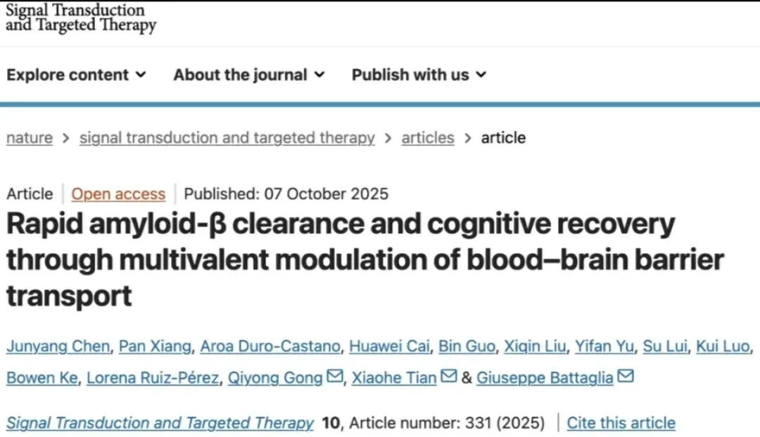 这一发现在不同病理驱动的模型中均得到验证,并与人类中具有认知韧性的个体特征相关联,从而显著提升了其临床转化的潜力。它从根本上挑战了“AD病变不可逆”的传统观点,为开发旨在恢复大脑功能、而不仅仅是延缓损伤的疗法,奠定了坚实的科学基础。四川大学华西医院与加泰罗尼亚生物工程研究所的合作团队,近日在《信号转导与靶向治疗》上发表了一项具有前瞻性的研究。他们不再拘泥于传统的“药物递送”思维,而是转向一个根本性问题:能否修复大脑自身的“清洁系统”,从而逆转阿尔茨海默病的病理进程?该研究聚焦于血脑屏障上一种关键转运蛋白LRP1。在健康大脑中,LRP1如同一个“运输通道”,负责将Aβ等有害蛋白从脑内运出至血液清除。然而,在阿尔茨海默病患者中,这一通道不仅数量锐减,其功能更易被导向一个名为Rab5的“降解通路”,导致LRP1自身被分解,清洁能力彻底瘫痪。研究团队设计了一种精巧的纳米颗粒A₄₀-POs,其表面精准修饰了能与LRP1结合的配体。这种设计并非强行清除Aβ,而是通过“分子导航”,巧妙地将LRP1的转运路径从“降解通道”Rab5,引导至正常的“运输通道”PACSIN2,从而恢复大脑自主清除Aβ的能力。这一策略标志着治疗理念的根本转变:从以往试图“绕过”血脑屏障递送药物,转向主动“修复并调控”屏障自身的功能。A₄₀-POs并非传统意义上的药物,而是一个功能调节器,它通过多价配体与空间结构的精准设计,实现了对细胞转运路径的“重编程”。这为神经退行性疾病的治疗开辟了一条从“被动给药”到“主动调序”、从“干预症状”到“恢复功能”的全新路径。[1]内容来源:郭梦晴,李晨阳,王莹莹,王一轻,翟国杰.阿尔茨海默病病理机制、生物标志物与治疗策略研究进展[J].中华神经科杂志,2025,58(12):1316-1323.DOI:10.3760/cma.j.cn113694-20250428-00251.[2]Protein Cell . 2025 Feb1;16(2):83-120. doi: 10.1093/procel/pwae026.