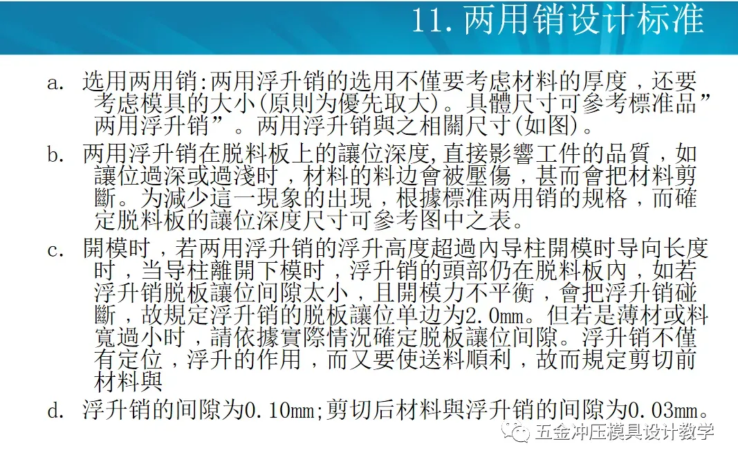 (2).顶出高度<=10MM时,一般选用Φ8.0的顶料销﹔顶出高度>=10.0MM时,选择其它标准规格的顶料销.