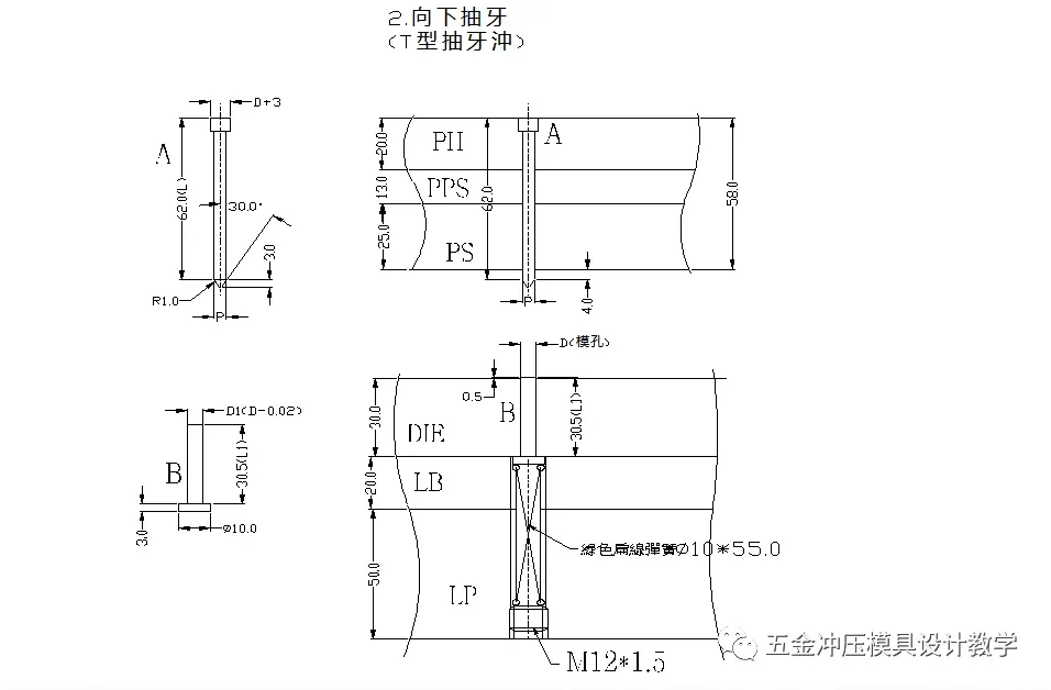 (1)抽孔,抽凸周围对称排配顶料销,也可采用內脱料的形式脱料。