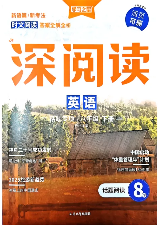 本期分享:2026春《学习之星学阅读》3-8年级下册,如果觉得不错的话,可以转发分享到班级群/年级群,让家长打印出来,帮助孩子学习哦! 本公众号分享的教辅资料,是为了给家长、学生和教师介绍并展示此套教辅资料的内容和特点,大家可以根据提供的资料信息,选择购买合适的正版纸质资料。作为一名家长,我也会经常买很多教辅资料,但其实很多资料都不会从头用到尾,有的写几页可能就不用了,个中原因有很多。但如果在购买之前,能够通过我们对比更多的教辅资料,选择最适合孩子的资料,这才是我们分享的真正意义!我们也建议各位家长、老师朋友,如果觉得某个资料比较合适,请一定要购买纸质正版!毕竟正版纸质印刷更精美、使用更系统、更方便。资料无限,时间有限,任何类型的资料有一两套就好,切不可这套做两页,那套做两页,这样不会有好的效果。祝孩子们学有所成! 亲爱的家长和同学们,优质的教育资源是孩子成长路上的明灯。希望今天的分享能为孩子的学习注入新动力!资料虽好,更要及时运用哦~建议将文章【收藏】或分享给身边需要的朋友,让知识传递温暖。后续我们还会持续更新各年级重点题型解析、学霸笔记等实用内容,点击下方名片关注我们,及时获取更多资源!
