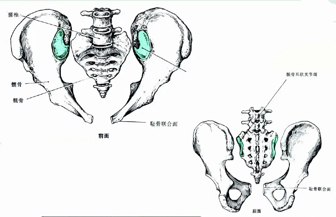 根据 Vleeming 等(1990)的研究,青春期之后大多数人的骶髂关节面会形成一个月牙形的峰,该峰贯穿整个髂骨表面,增加了骶髂关节的稳定性。
