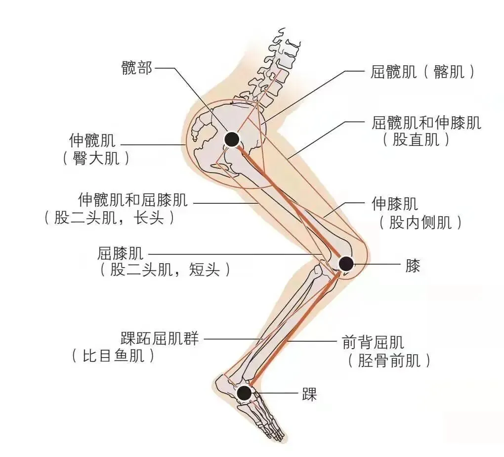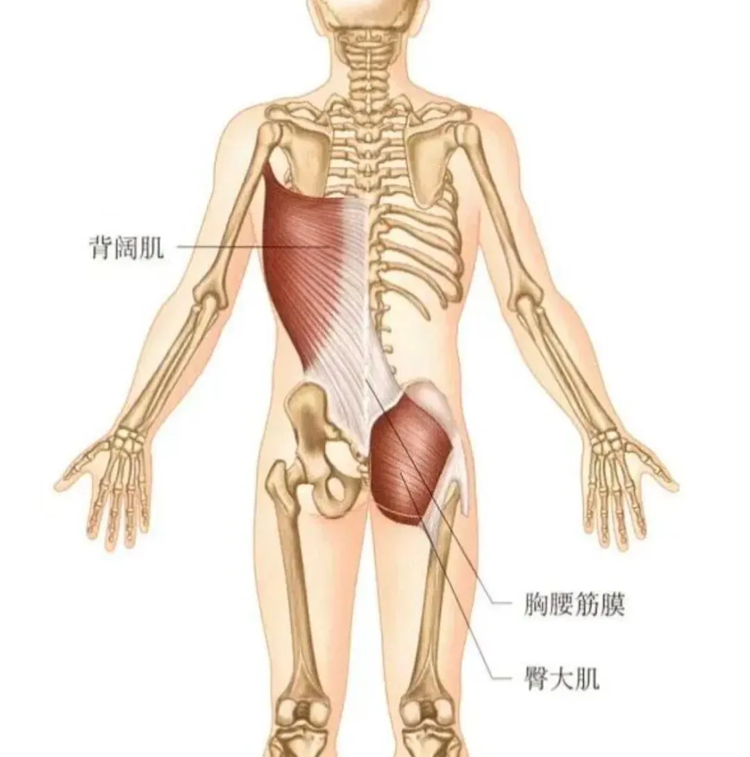 臀大肌通过胸腰筋膜的连接向对侧的背阔肌,形成了所谓的肌筋膜后斜链。