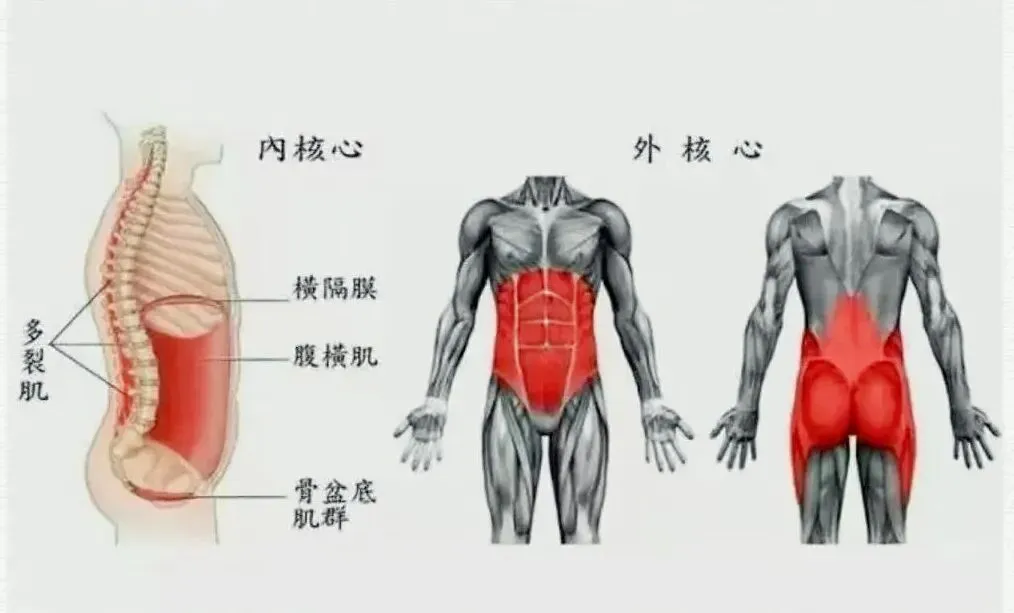 韧带本身不能维持骨盆的稳定,而是需要依靠肌肉系统的辅助来完成。有两个重要的肌群有助于腰部和骨盆的稳定,统称为内部核心(核心肌群)和外部核心(肌筋膜链系统)。内部核心由腹横机、多裂肌、膈肌和盆底肌构成,也统称为核心肌或局部稳定肌。外部核心由多个“链”或者肌群构成。