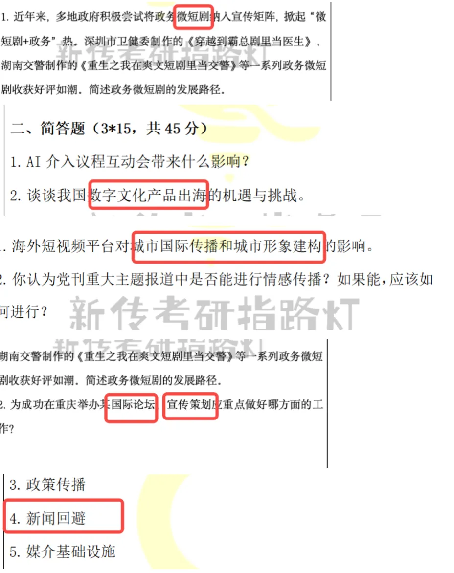 第三题:基础中的基础题啦!同时也是重大考过的原题,之前就考察过名词解释和简答题,经典理论这一块重大还是比较喜欢考的,沉默的螺旋、议程设置、框架理论等等都是常考的知识点,27的宝子们一定要注意把这一块背得滚瓜烂熟,包括其中的小考点也要记得哦!