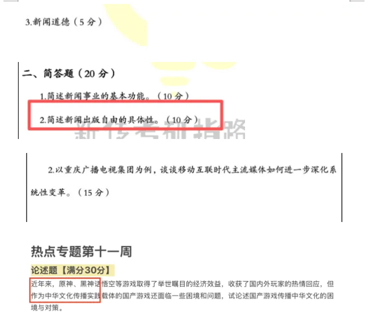 名词解释都不是很难哦,模考基本有涉及到,比较意外的是今年出了一个外新史的新闻史,很多小宝很担心自己写不出来,但其实大多数人都对这个不是特别熟悉~这可能是一个信号,哪怕之后不咋考大题,但是最最基本的名词和简答可以在备考的时候记忆一下哦~