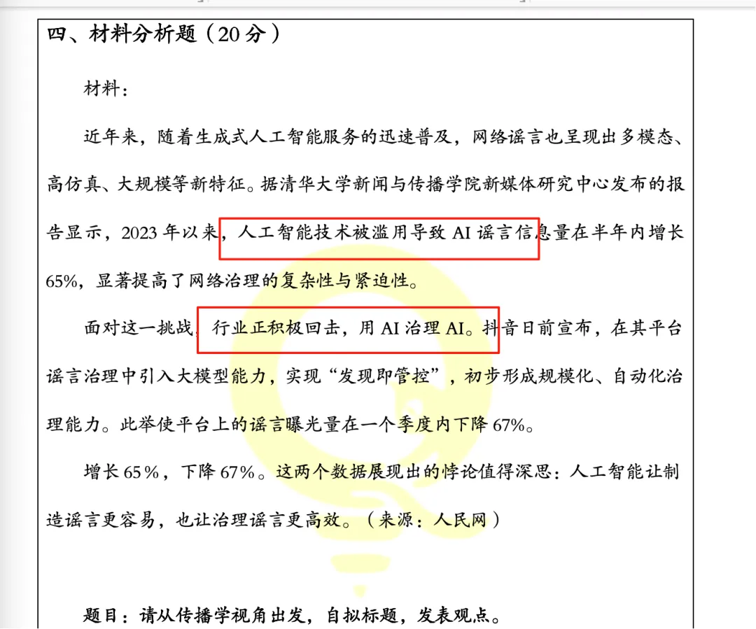 材料关于当前AI存在造假冒充、故意引导对立等问题。(二模押中)