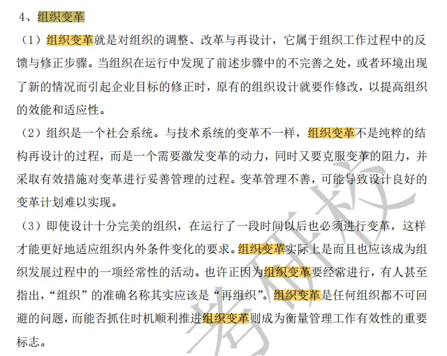 2、组织变革该考点在红宝书资料(63页)课程讲义(重点班第九课时)均有提到