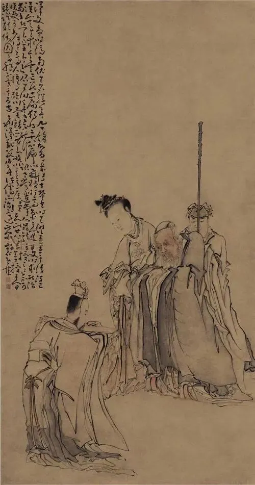 枯柴描给人以苍劲古朴、粗犷豪放之感,擅长表现粗布麻衣、树皮草履等粗质衣料的质感。这种描法能够清晰地展现出衣料的粗糙质感与厚重感,使衣物仿佛历经岁月沧桑,为画面中的人物增添了一份古朴与厚重。它体现了书法用笔中的“飞白”效果与“渴笔”技法,是古代画家表现文人隐士、山野樵夫等形象的重要技法。