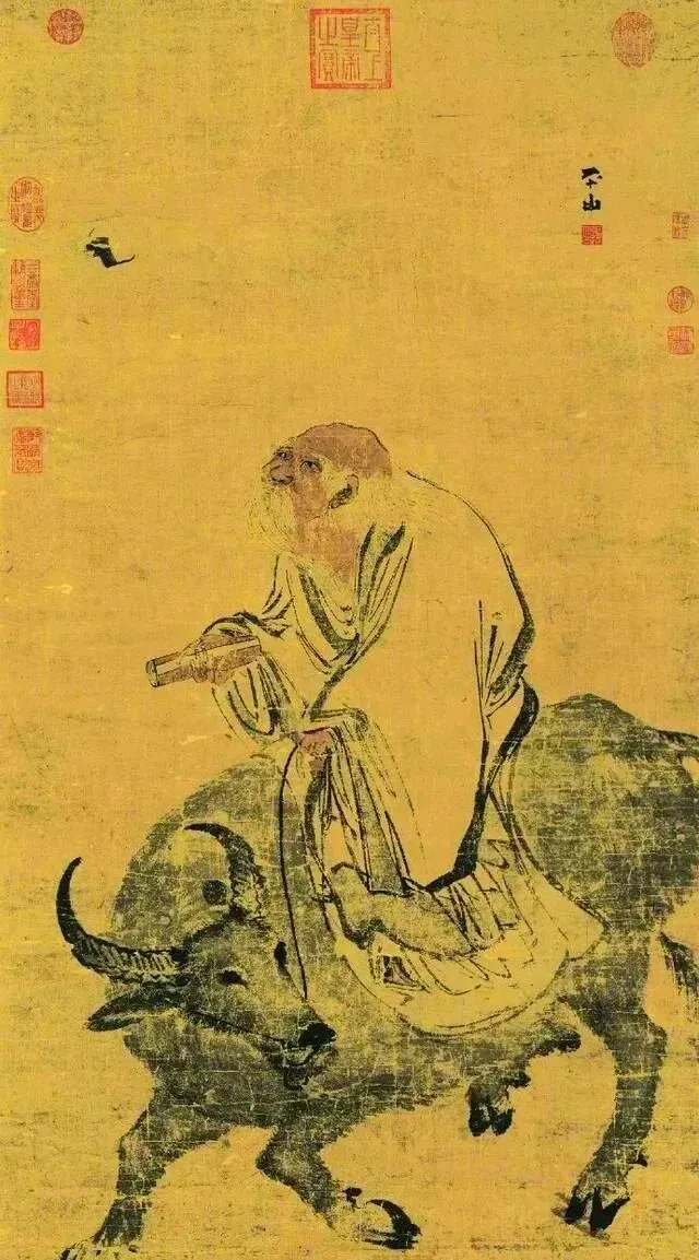 《老子骑牛图》中,张路运用枯柴描技法表现老子衣纹。线条苍劲古朴,笔中含水较少,墨色枯涩,生动地表现出粗布道袍的质感。画中人物衣纹线条如老树枯枝般有力,体现了道家崇尚自然的哲学思想。