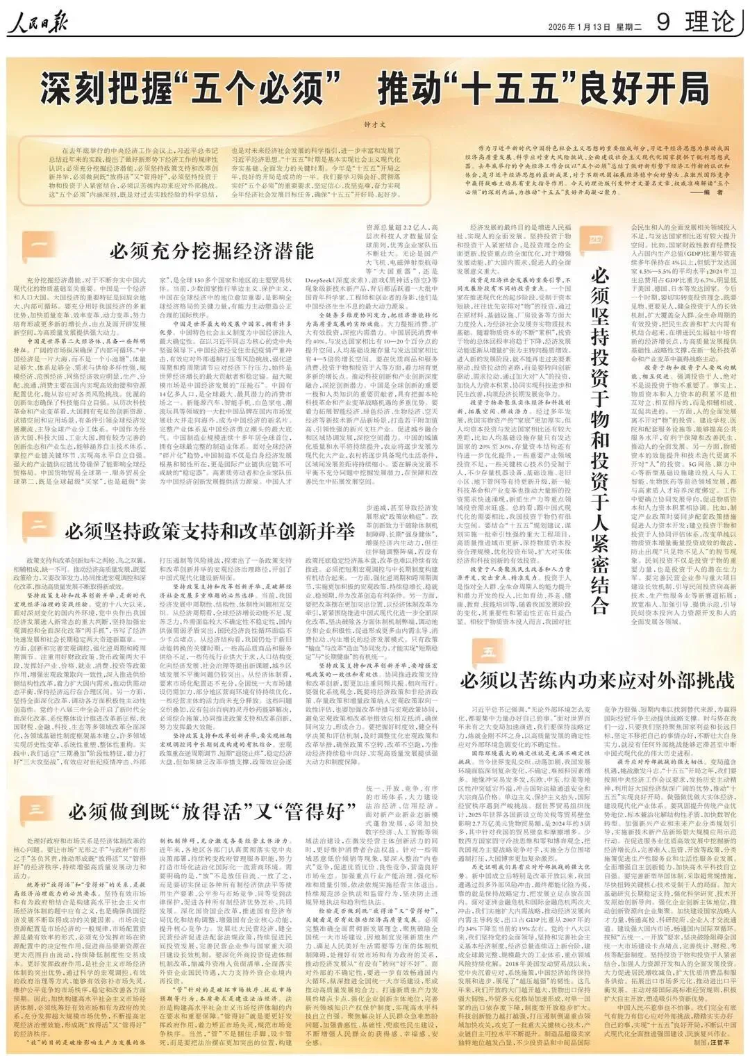 一是逻辑很清晰。这篇文章的逻辑主线,是去年中央经济工作会议提出的“五个必须”规律性认识,从立意到布局、从观点到语言,都以此为聚焦、因之而展开。
