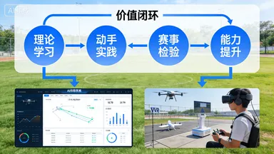 案例:全国无人机团体赛中,某团队在 “多机协同物资投送” 任务中,并非一味追求飞行速度,而是通过 “先规划最优航线→根据各机剩余电量分配任务→实时调整投送顺序” 的策略,最终以 “零失误” 完成任务,展现了 “智慧赢未来” 的核心逻辑。