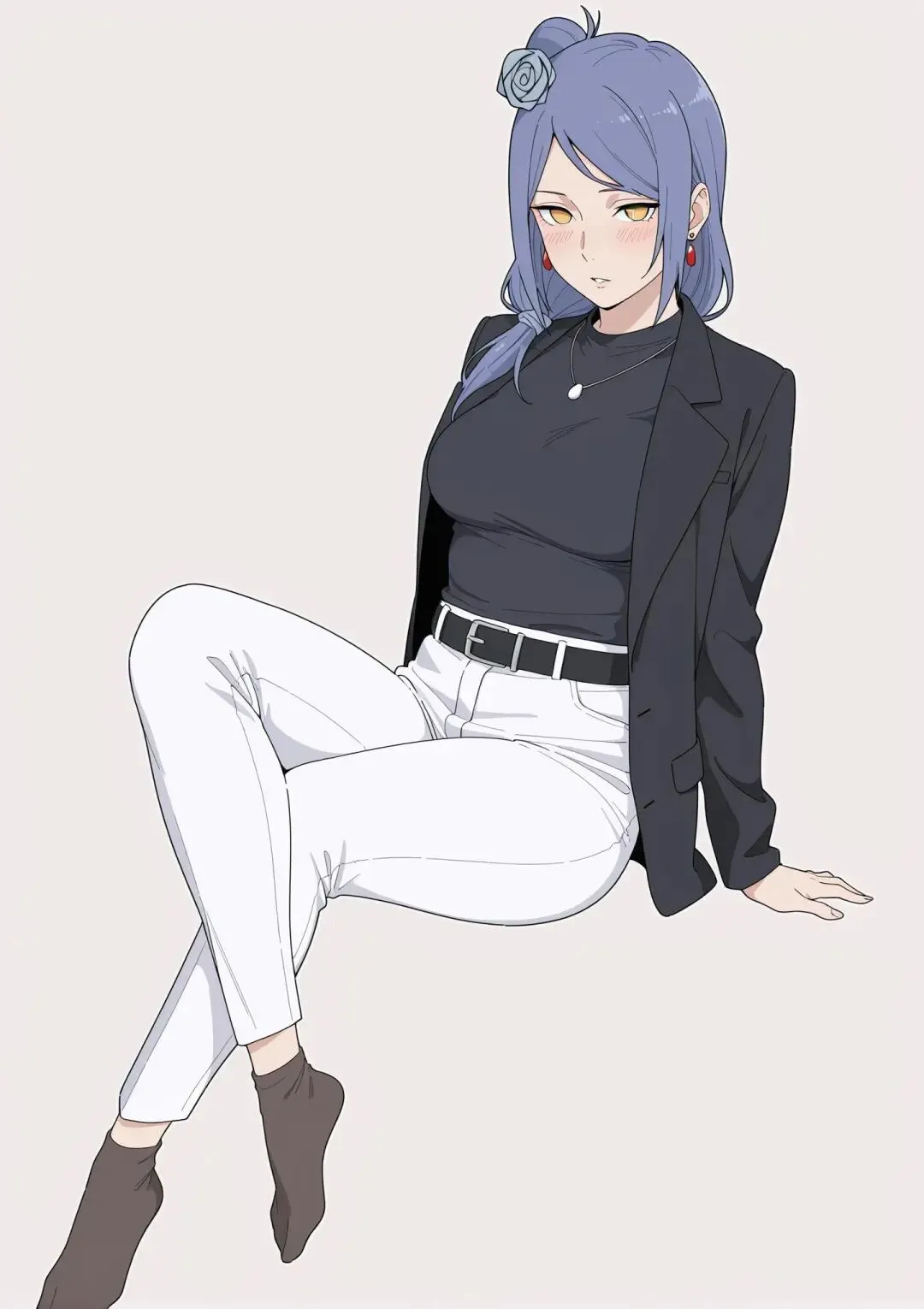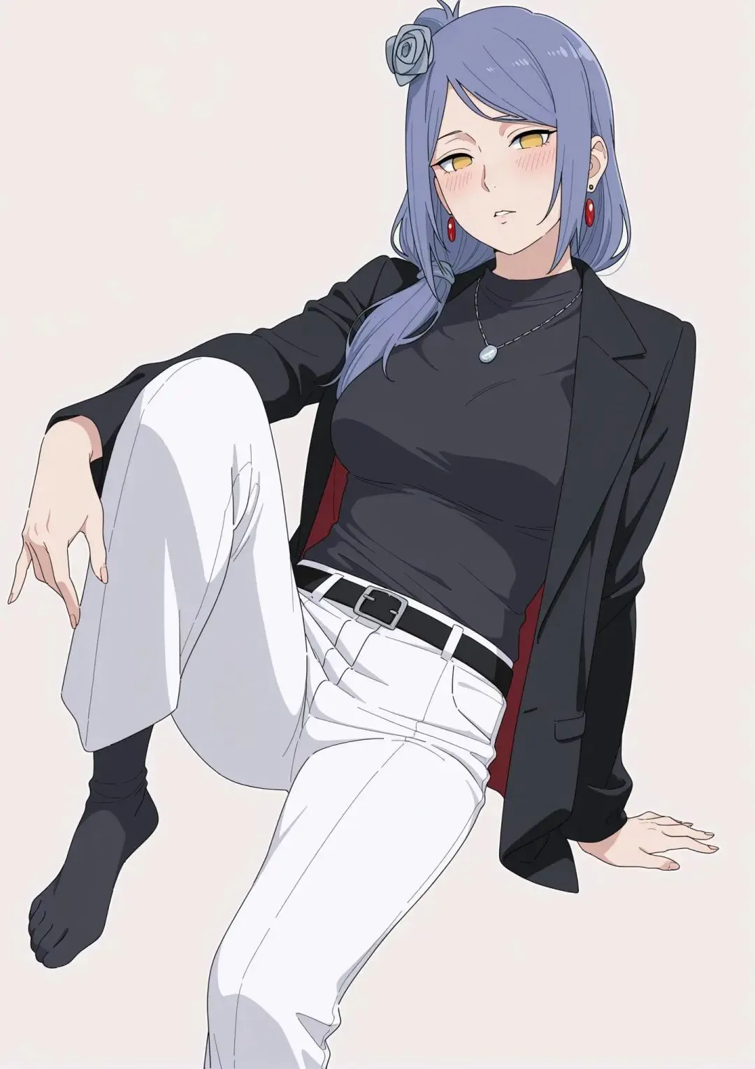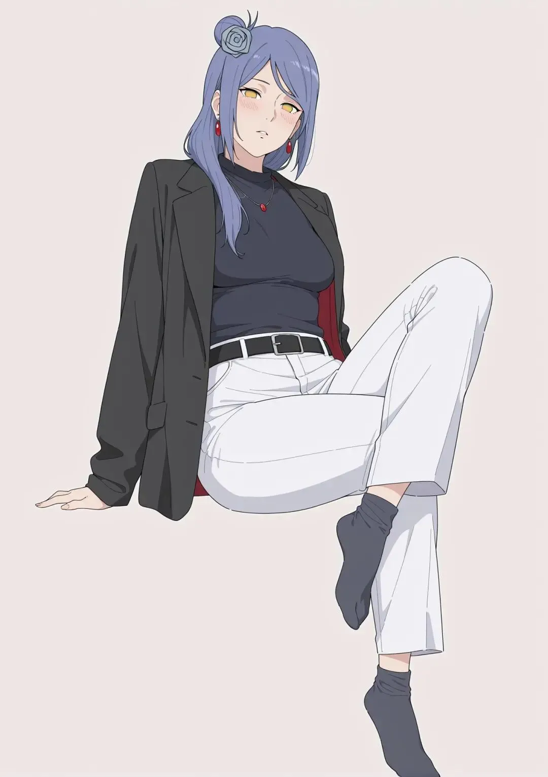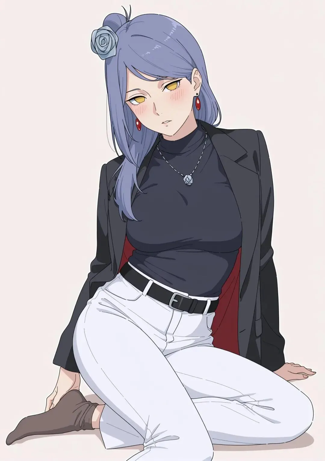 在火影忍者的世界里,小南一直是一个神秘而优雅的存在。她是晓组织的创立者之一,也是其中唯一的女性成员,那身绣着白边红云的黑色风衣,搭配浅蓝紫色的头发和头上的纸花,是她标志性的装扮。然而,当小南穿上西装的那一刻,仿佛打开了一扇通往全新世界的大门。