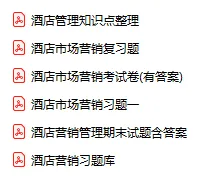 今天分享的资料是「1142-酒店市场营销」电子版+学习笔记+知识点总结+期末考试重点+复习资料+习题集及答案+名词解释+历年真题试卷及答案+题库及答案+复习重点+思考题及参考答案+公式总结+考试重点基础题+知识总结+高清PDF可打印+免费分享!
