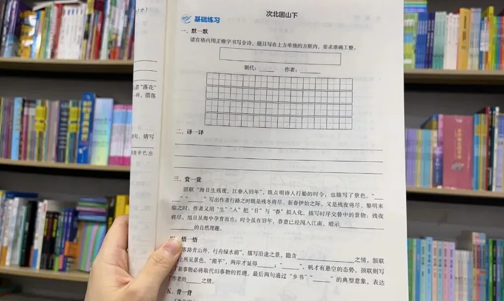 它严格按照教学目标,先背默诗词全文、文学常识;再赏悟写作技巧和思想情感;最后真题操练,通过实战训练赏析和阅读理解的能力。