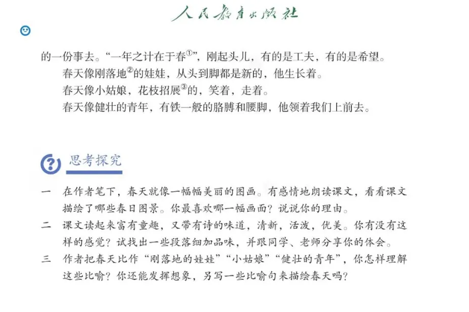就比如下面这篇,对应的是七年级上册的第一篇课文——《春》。