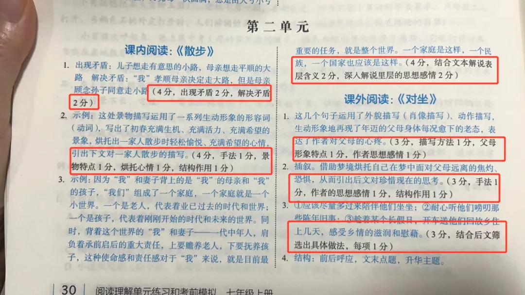 教材里的课文在这里就是阅读材料,而课文后的阅读思考会被改编成中考阅读题的形式,让孩子在初学时就用应对中考的方式,精准吃透课内,轻松提升能力。