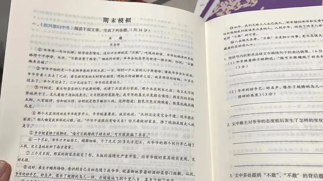 而当我继续往下翻,我发现它和我之前见过的很多初中同步练习册都不太一样: