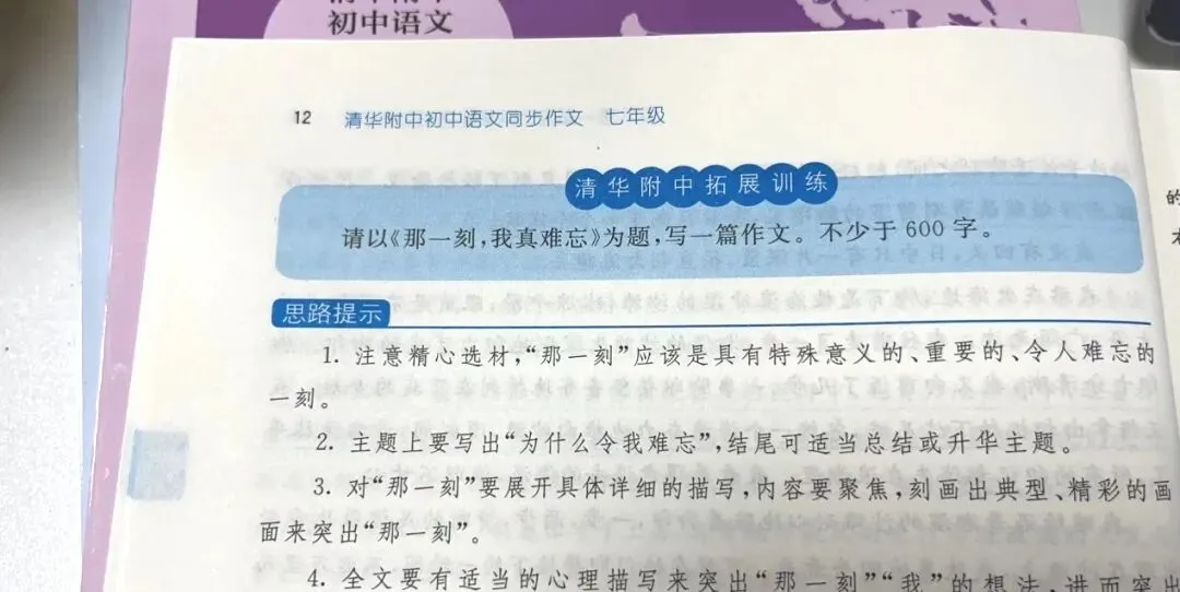 下单语文+数学两科练习册的读者,咱们额外加赠一册 《清华附中同步作文》。