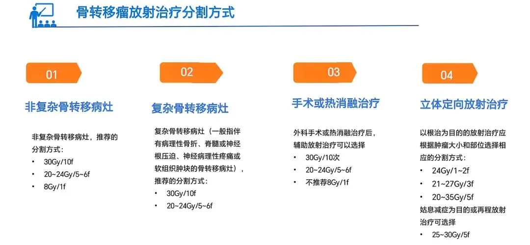 单次高剂量(8Gy/1f)仅用于姑息,因毒性风险高,不适合复杂病灶。