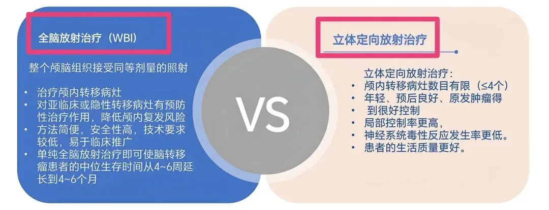WBI与SRS的选择依据肿瘤负荷与器官保护平衡:WBI覆盖全脑,但海马区等关键结构受损可能导致神经认知下降;