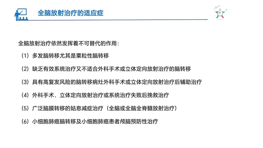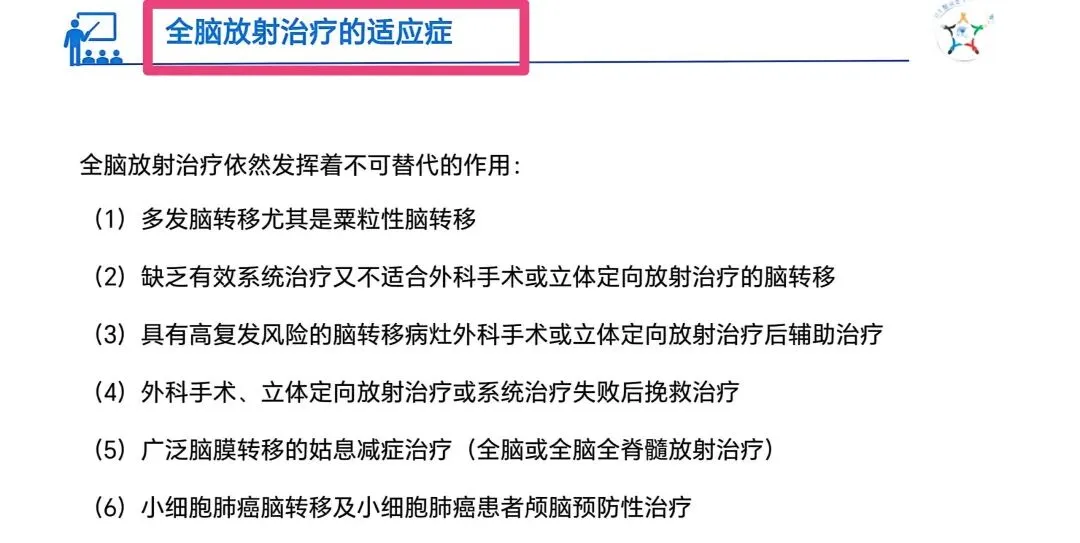 适用于多发转移、脑膜转移或预防性治疗(如小细胞肺癌PCI),可延长生存但可能损伤认知功能。