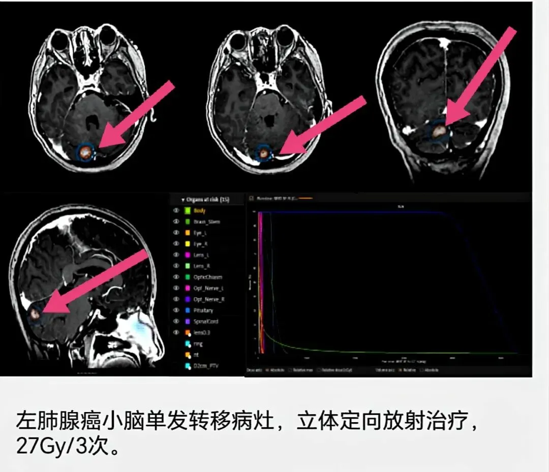 SRS精准靶向病灶,通过高剂量梯度保护正常脑组织,符合“最大肿瘤杀伤、最小损伤”原则。
