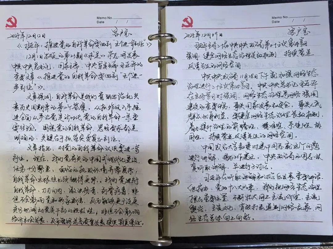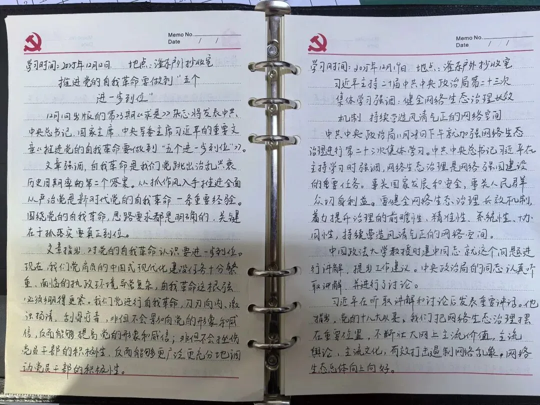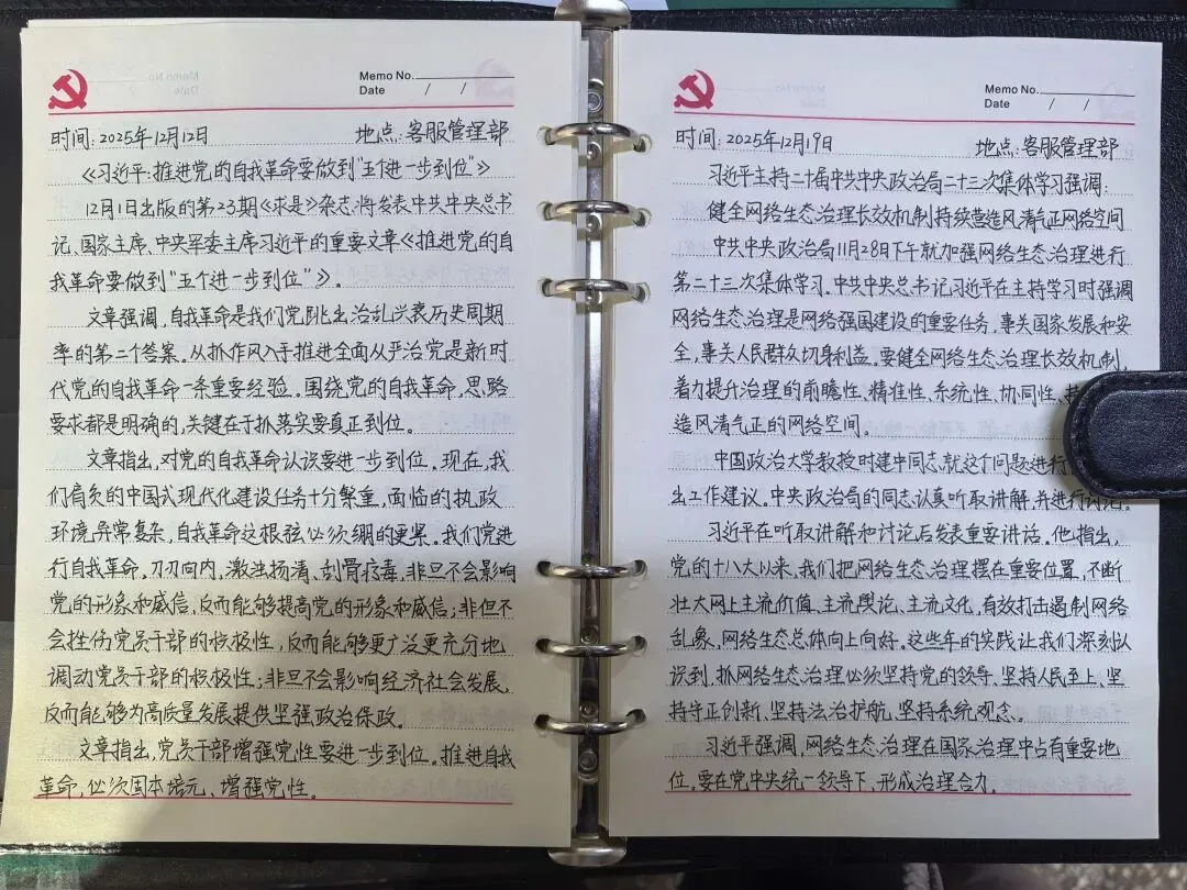 为持续深化党员理论学习教育,切实提升党员政治素养与思想觉悟,近期,营业处党员学习考核小组组织开展了党员学习笔记专项检查工作。