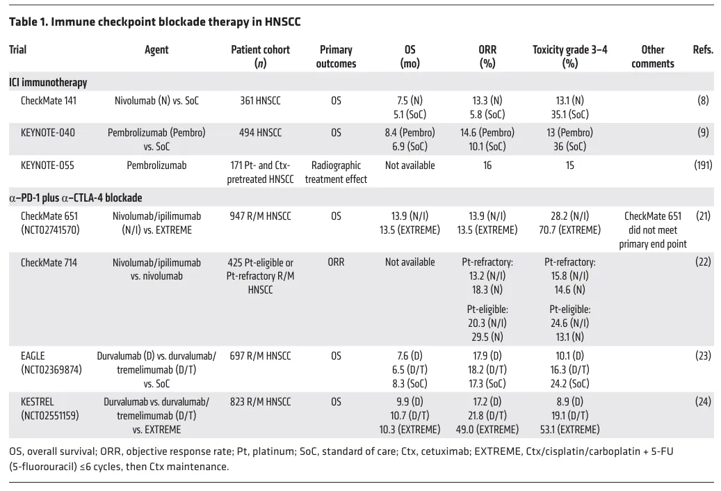 2.Immunotherapeutic strategies in head and neck cancer: challenges and opportunities;J Clin Invest. 2025;135(8):e188128.