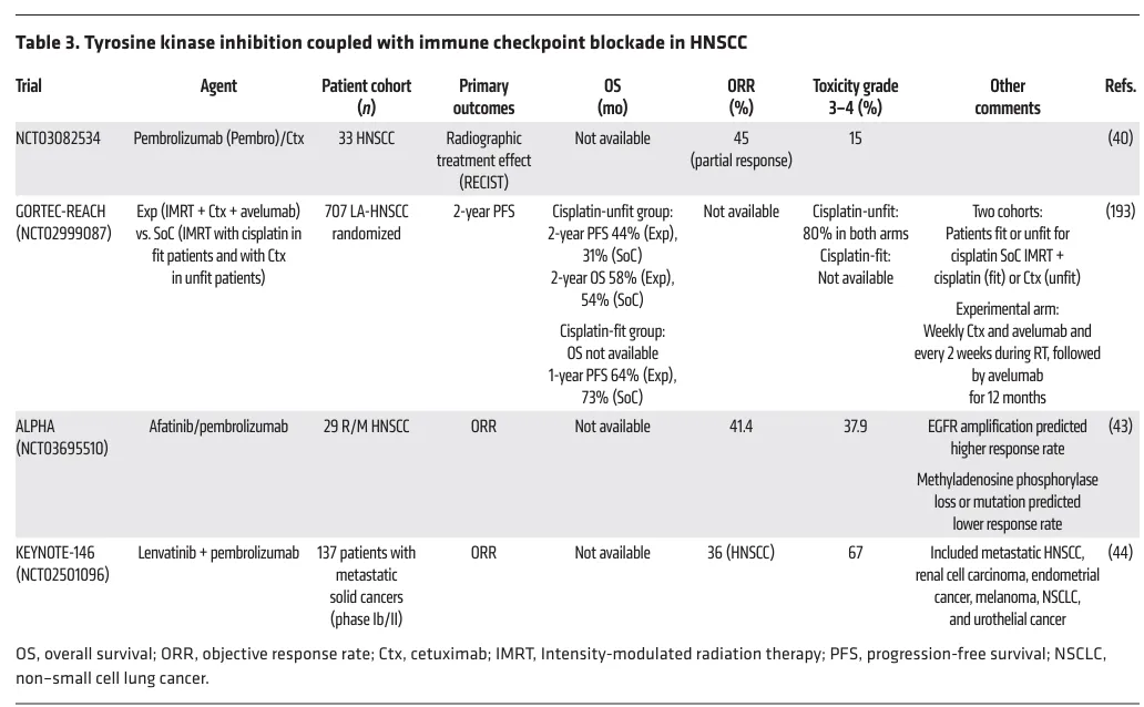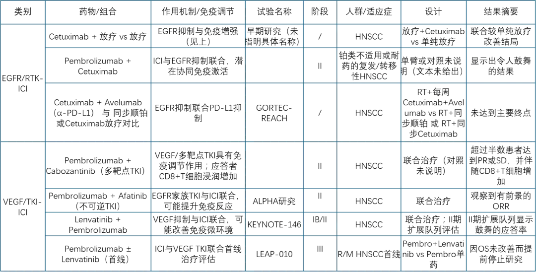 RTK抑制联合免疫治疗在HNSCC中具有潜力,但现有试验疗效有限,部分组合显示短期应答,亟需深入研究以克服免疫耐受并优化策略。