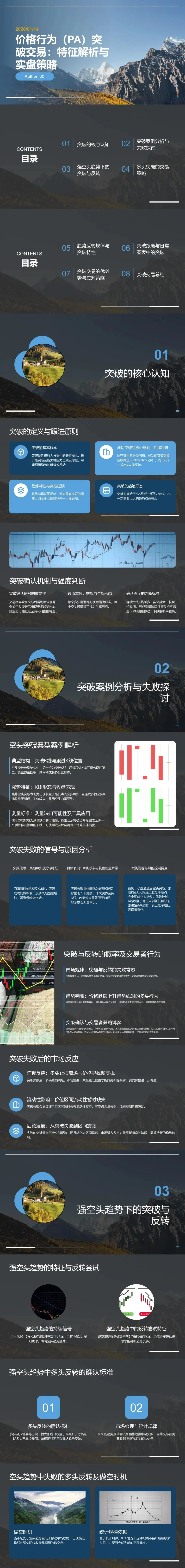 分享本人在学习价格行为(PA)中得到的知识,因原作课程内容复杂繁多、英文翻译质量不佳,为了降低学习压力、提高学习质效,我用色彩标注了重点知识,并且对翻译进行了校对,或加入了一些个人认为重要的补充笔记。希望陪你一起成长,共同提高交易能力。1.5.3 空头趋势中失败的多头反转:卖出强多头收盘价一、突破