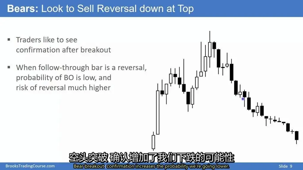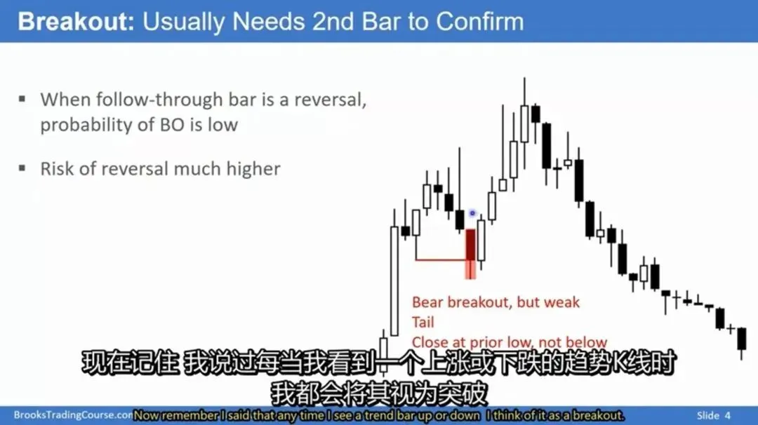 关键时机:只有当出现强势跟随K线确认突破后,价格继续下跌的概率才会显著增加