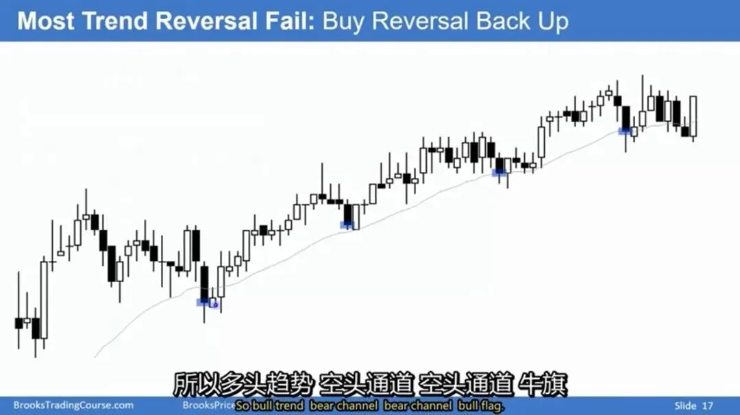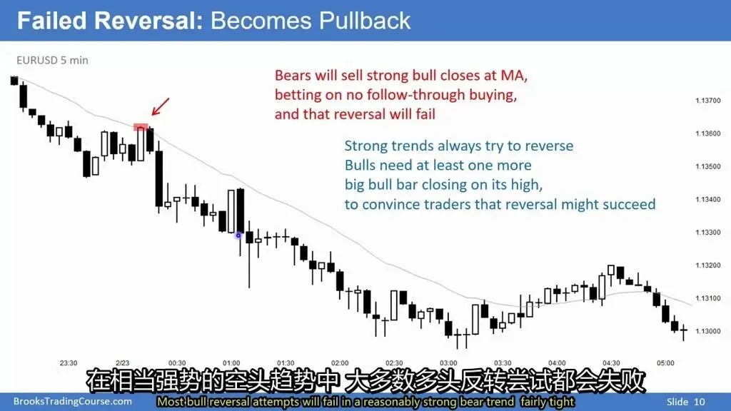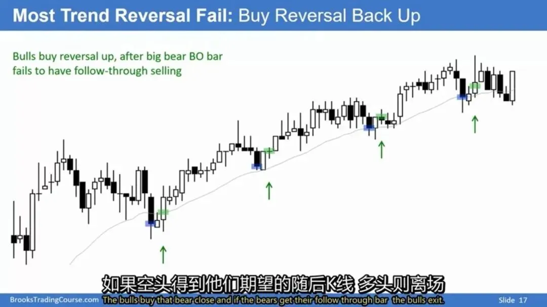 市场心理:80%的趋势反转尝试在强势趋势中会失败,因此交易者需要看到连续的多头确认信号。