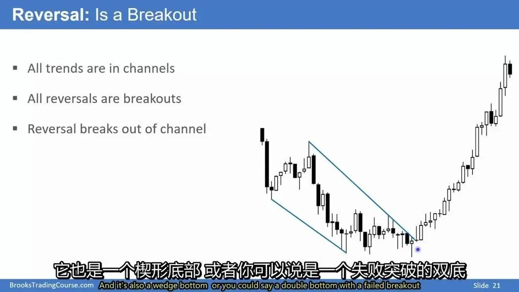 反转即突破:所有反转都是对原有通道的突破(break out of channel)