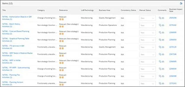 评估向 SAP S/4HANA 迁移的影响并非易事:有许多简化措施可能会或可能不会对迁移产生影响,这取决于 SAP ERP 中使用的业务场景和功能。SAP 为迁移到 SAP S/4HANA 的公司提供了一个名为 SAP 就绪检查(SAP Readiness Check)的工具。该工具通过提供一个汇总所有就绪信息的交互式仪表盘,帮助您评估 SAP ERP 系统向 SAP S/4HANA 迁移的就绪情况。分析 SAP 就绪检查的结果是 SAP S/4HANA 迁移的起点,它会告诉您哪些简化措施可能会对该系统产生影响。下图展示了 SAP 就绪检查针对制造领域系统的相关简化项的结果。在这里,一些物料需求计划(MRP)简化措施,如分包、计划文件和计划期的简化,与该系统相关,因此在转换过程中应予以处理。对于每个相关的简化项,SAP 就绪检查将推荐一份 SAP notes,其中提供了有关该简化项的技术信息。除了简化项,SAP 就绪检查还将提供额外信息,例如针对每个业务角色推荐的 SAP Fiori 应用程序。有关 SAP 就绪检查的更多信息,请参考 SAP notes 2758146。截至2021年,SAP还为需要从一个SAP S/4HANA版本升级到另一个版本的企业提供了SAP S/4HANA升级就绪检查工具(SAP Readiness Check for SAP S/4HANA upgrades)。更多关于该工具的详细信息请参阅SAP notes 3059197。你若喜欢,点个❤️谢先👇