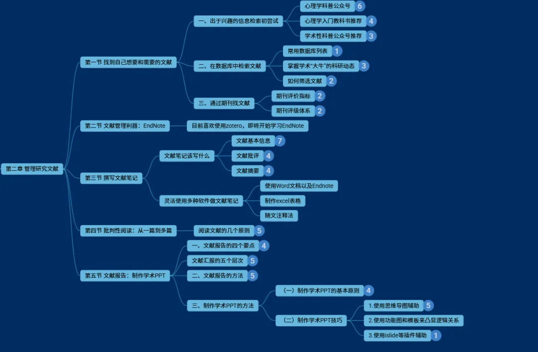 总结:本章主要讲了作为科研小白的我们“如何管理我们的文献数据库”、“如何撰写文献笔记”、“如何进行批判性阅读”、“如何制作学术文献汇报PPT”。第二章的干货居多,阅读时间也特别长,要想完全掌握里面的内容,需要我们勤加练习。03 干货库