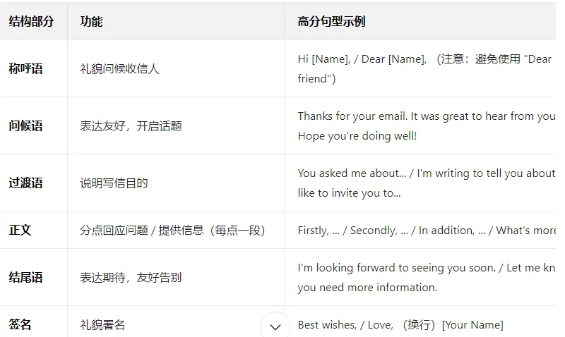- 字数控制:使用模板中的字数分配建议(如书信开头结尾各 5 词,正文每点 30 词左右)