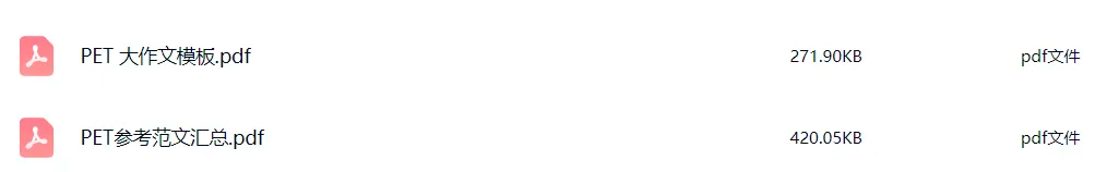 PET补充学习资料,PET大作文模板(PDF),背熟考试稳了