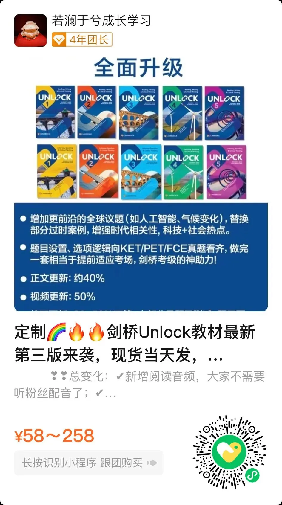 分享,让世界更美好。我长期投入大量时间与精力,专注搜罗优质英语教育资源,尤其是市面稀缺的原版教材,99%免费分享给每一位热爱学习的学生,以及重视孩子教育的家长。